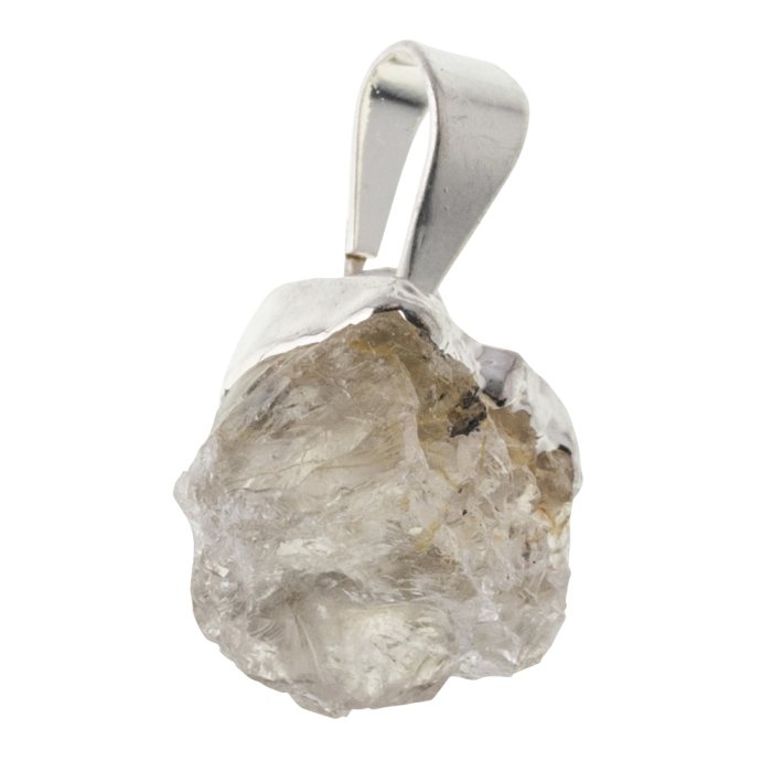 Rutiilikvartsi on lÀpinÀkyvÀ tai maitomainen kvartsikide, jonka sisÀÀn on kasvanut neulamaisia rutiilisulkeumia. Rutiili on harvinainen titaanioksidimineraali, joka kiteytyy rakeiden, massojen, prismakiteiden ja pitkien neulamaisten kiteiden muodossa. NÀmÀ neulan muotoiset kiteet tunkeutuvat muihin mineraaleihin, kuten kvartsiin. Rutiilit löytyvÀt yleisimmin kultaisena tai punaisena, mutta sitÀ on myös ruskeana tai mustana. Rutiilikvartsia esiintyy ympÀri maailmaa samoilla alueilla kuin tavallistakin kvartsia, ja vaikka Brasilia on tunnetuin korkealaatuisesta rutiilikvartsista, sitÀ löydetÀÀn myös mm. Madagaskarilta, Pakistanista, VenÀjÀltÀ, Australiasta ja Yhdysvalloista. TÀmÀn riipuksen rutiilikvartsi raakapala on Brasiliasta.