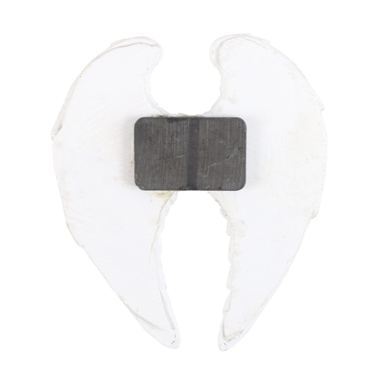 Valkoinen hartsista valmistettu koristemagneetti jossa on kauniit ja suuret enkelin siivet. Tämä magneetti symboloi sydämen toiveita, positiivisiutta, armoa ja suojelusta. Täydellinen esim. kotiin tai hoitotilaan sekä lahjaksi ystävälle, lapselle ja kaikille heille jotka tarvitsevat toivoa, lohtua tai suojelusta.