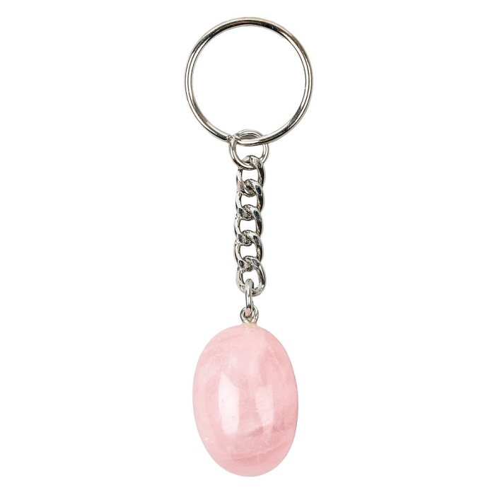 TUOTETIEDOT: Avaimenperän luonnonkivi on aitoa ruusukvartsia jonka kovuus on Mohsin asteikolla 7.