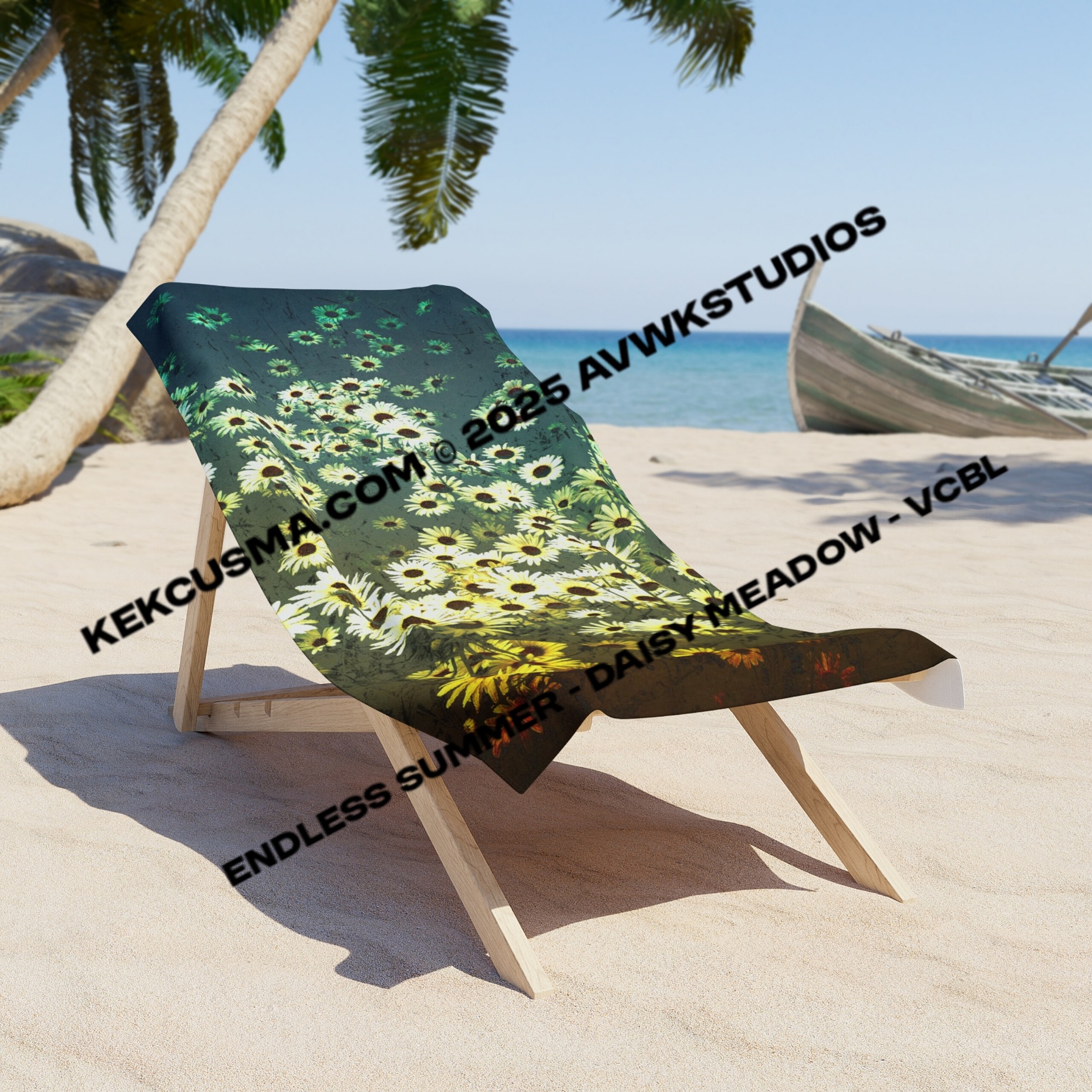 Sunlit daisies scattered across a deep, ocean-hued field — this beach towel brings a quiet, vintage bloom to your shoreline rituals. The soft cotton loop backing feels gentle against skin while the printed polyester face holds color and dries fast after a salty dip. Lay it on warm sand, drape it over a lounge, or wrap yourself in the faded, golden edge light that reads like late-afternoon sun. It’s for people who linger a little longer by the water, who notice small blooms and warm tones, and who want a towel that looks lived-in and loved from the first use.