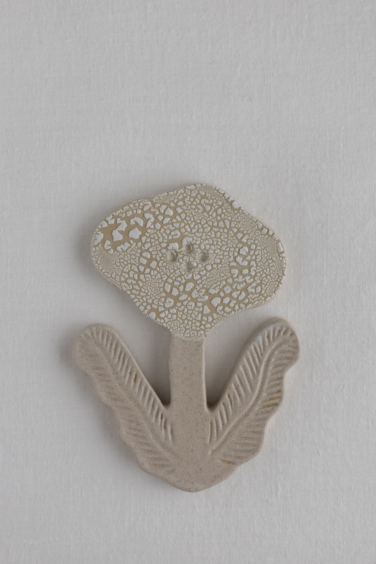 Keramiikkareliefi, joka on saanut inspiraationsa valtavasta puutarhainnostuksestani. Teos on valmistettu kivitavarasavesta ja lasitettu kahdella lasitteella (valkoinen & beige). K 16cm x L12cm x 1,5cm. Valmistusvuosi 2025.