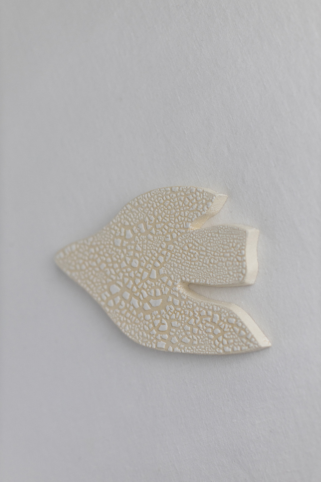Keramiikka-seinäreliefi. Pääskyt ovat lempilintujani. Ne palaavat joka vuosi toukokuussa ja viettävät kanssani koko kesän puutarhassa. Pituus 18cm x Korkeus 12,5cm x 1,5cm. Kivitavarasavi & valkoinen lasite, josta savi näkyy läpi. 2026.