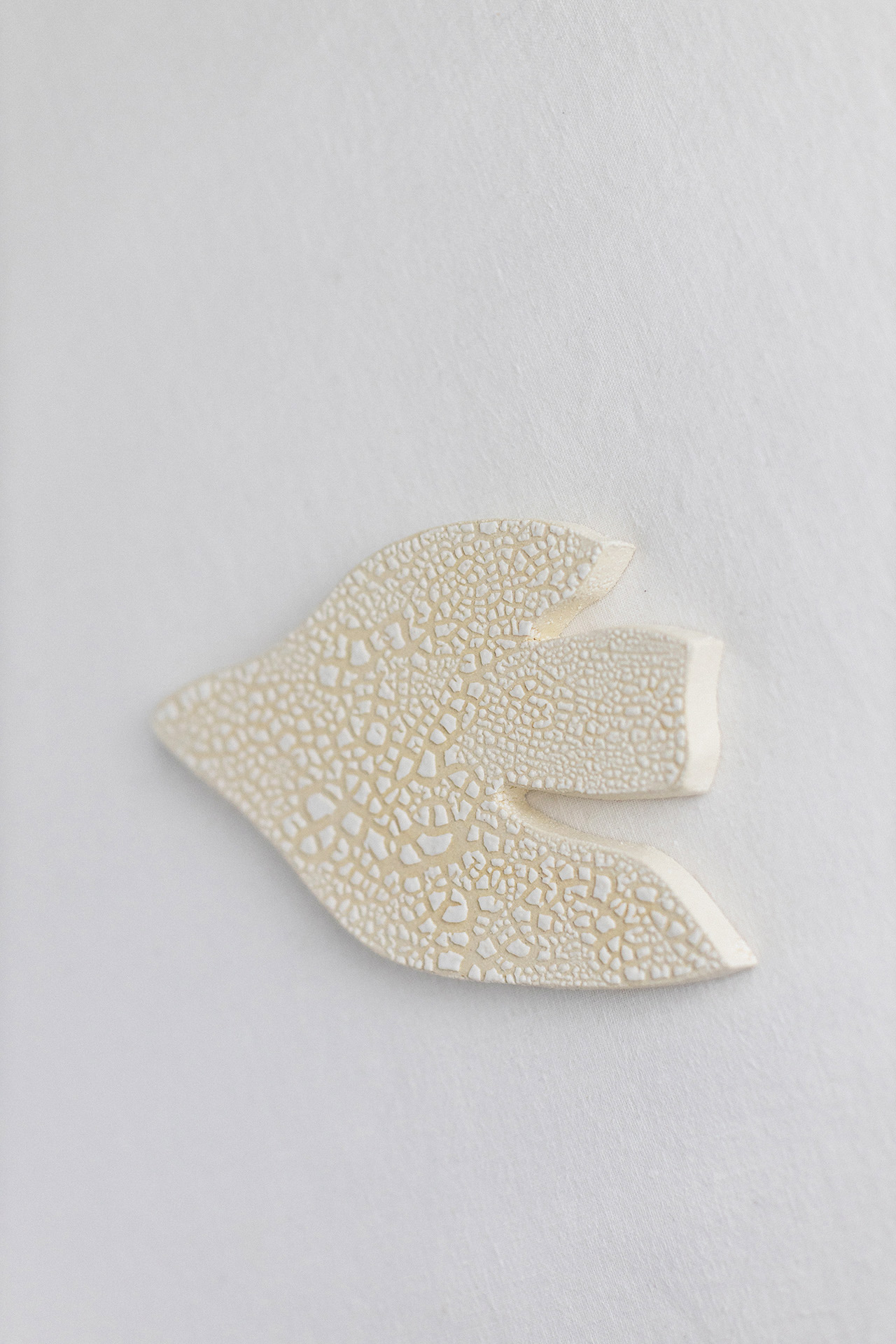 This ceramic wall relief features swallows, which are my favorite birds. They return every year in May and spend the entire summer with me in the garden. Dimensions: L 18 cm x H 12.5 cm x D 1.5 cm. Made from stoneware clay and finished with a white glaze that allows the clay body to show through. 2026.