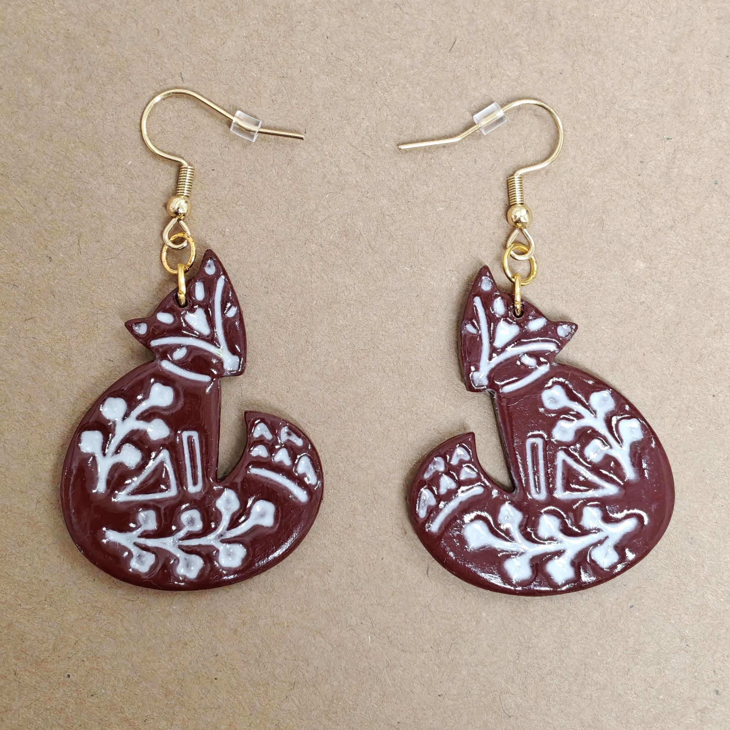 Korvakorut polymeerimassasta. Korkeus koukun kanssa n. 6 cm. Koukut kullattua ruostumatonta terästä (18K/rst304).