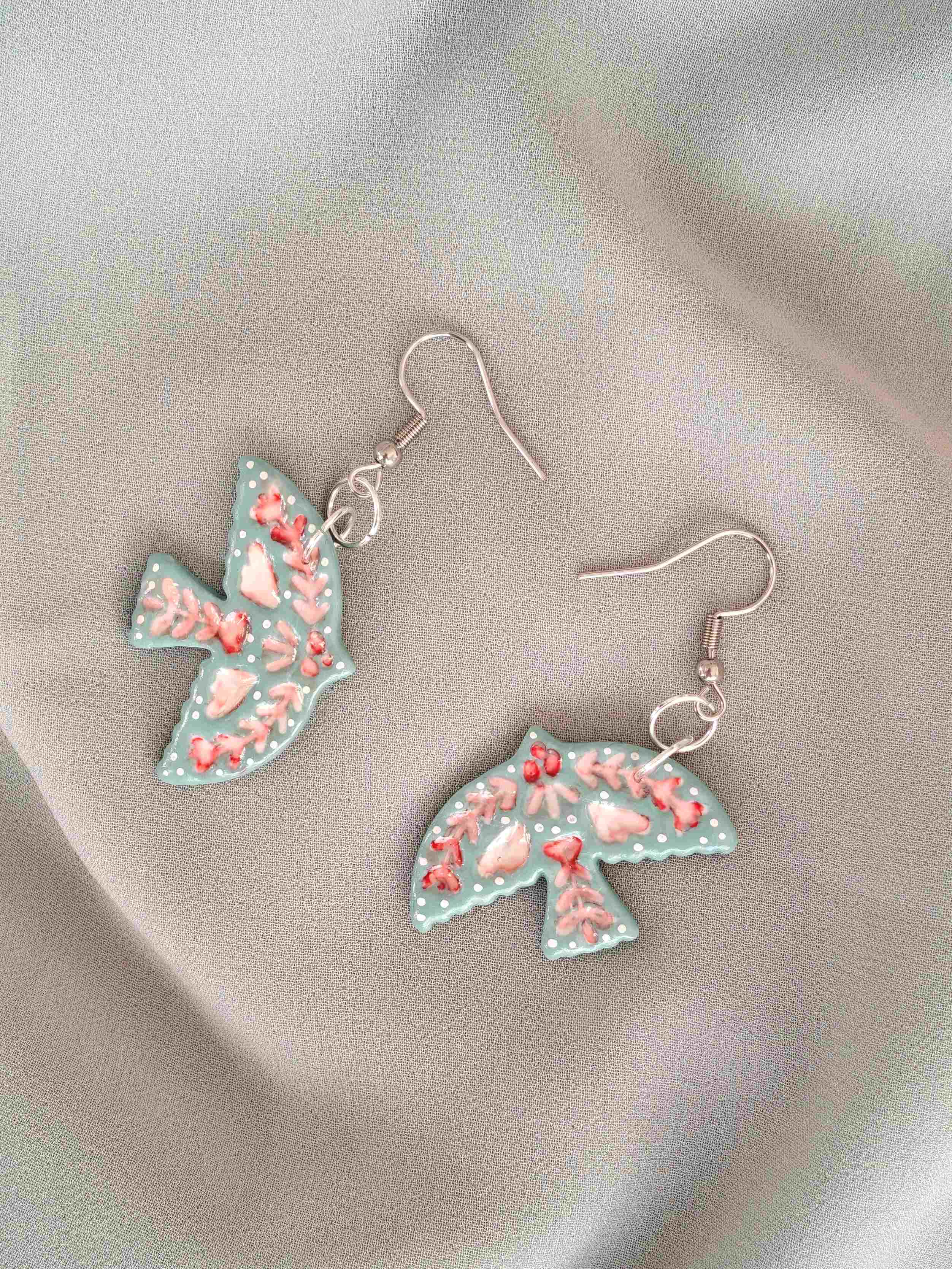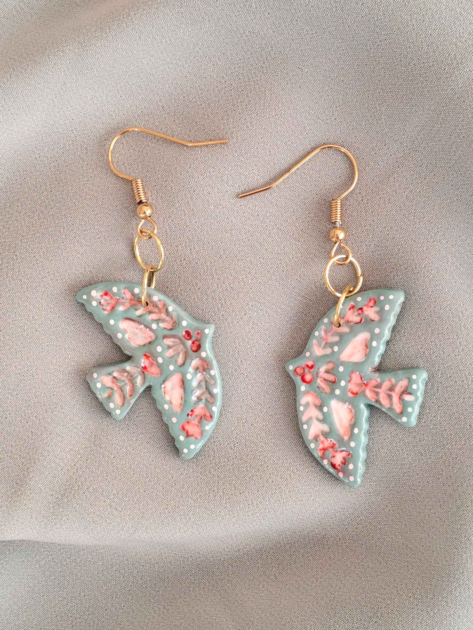 Korvakorut polymeerimassasta. Koukut kullattua ruostumatonta terästä (18K/rst304). Valittavissa myös ruostumaton teräs (rst304) ilman kultausta, tästä voit ilmoittaa tilauksen yhteydessä. Korun korkeus koukkuineen n. 6 cm.