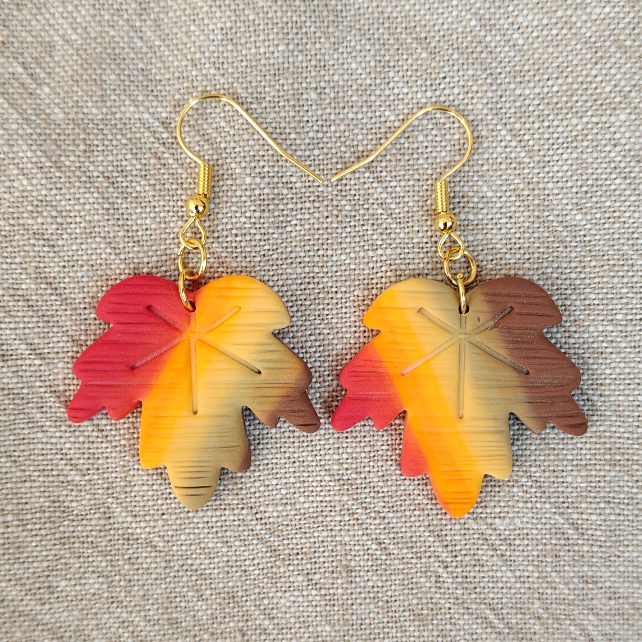 Polymeerimassasta valmistetut korvakorut. Korun korkeus koukkuineen n. 5 cm. Metalliosat kullanväristä rautaa. Nikkelitön.
