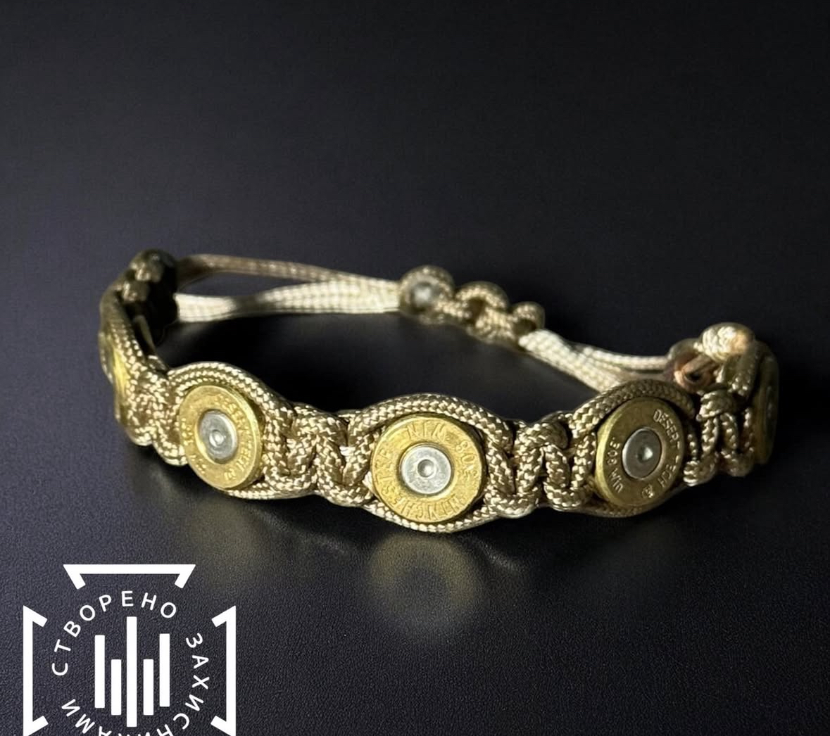 Rannekoru aidolla hylsyn kannalla. Valmistettu ukrainalaisten veteraanien käsityönä. Värit musta, punainen, harmaa, valkoinen, sininen, violetti, khaki, kulta. Ilmoita toivottu väri, viestikentässä tilauksen yhteydessä.