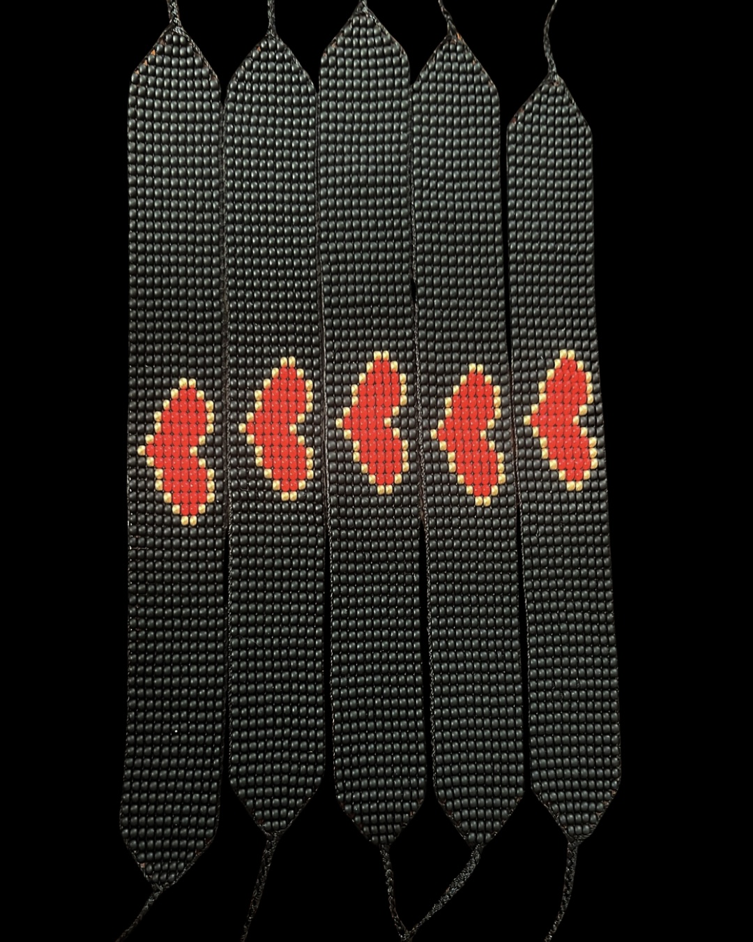Meidän yhdistyksen kerhossa käsityönä tehty helmirannekoru. Pituus on säädettävä.