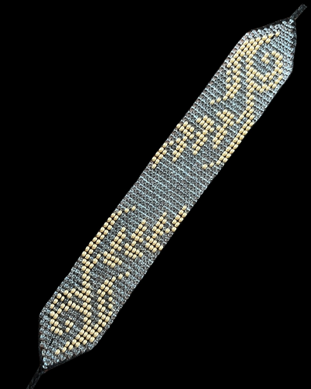 Meidän yhdistyksen kerhossa käsityönä tehty helmirannekoru. Pituus on säädettävä. Kirkkaiden helmien pohjalla, tähkät kultaisista helmista.