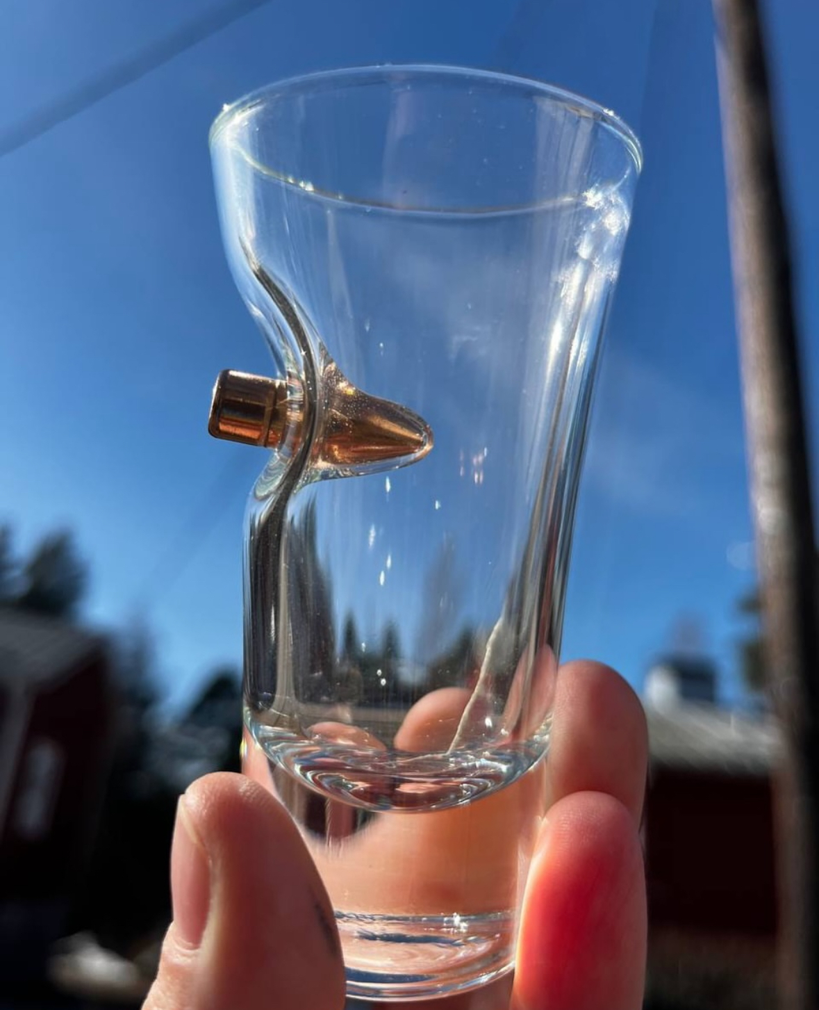 Ukrainan sotaveteraanien käsityönä tehdyt lasit luodilla. Puinen lahjalaatikko sisältää 6 lasia luodilla. Hinta sisältää toimituskuluja. Jos mielessä on enemmän kun yksi laatikko, laita sähköpostia :)