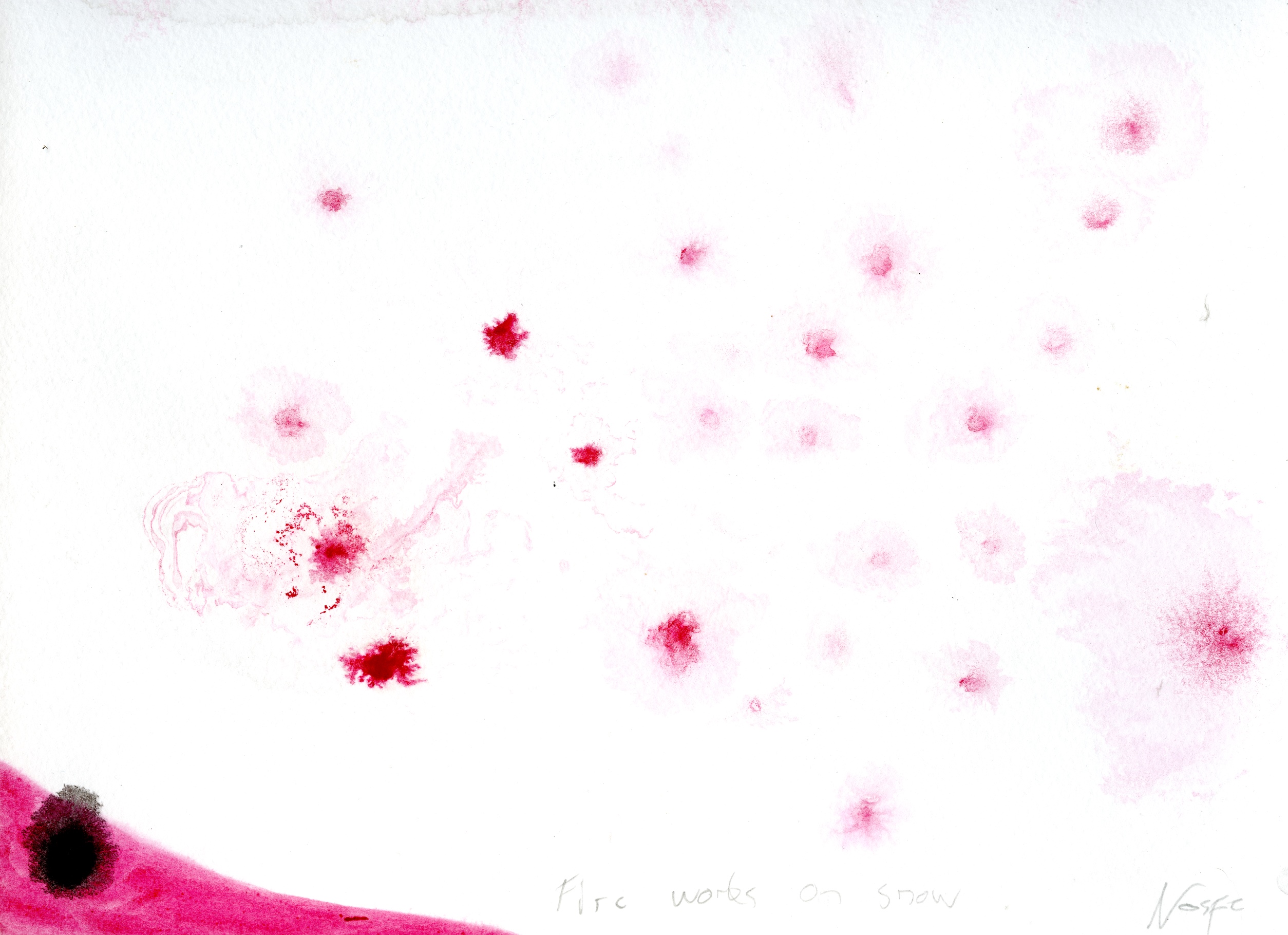 “Fire works on snow” By Pilvari “Nosfe” Pirtola Aquarell 2025 22.8 * 30.4cm