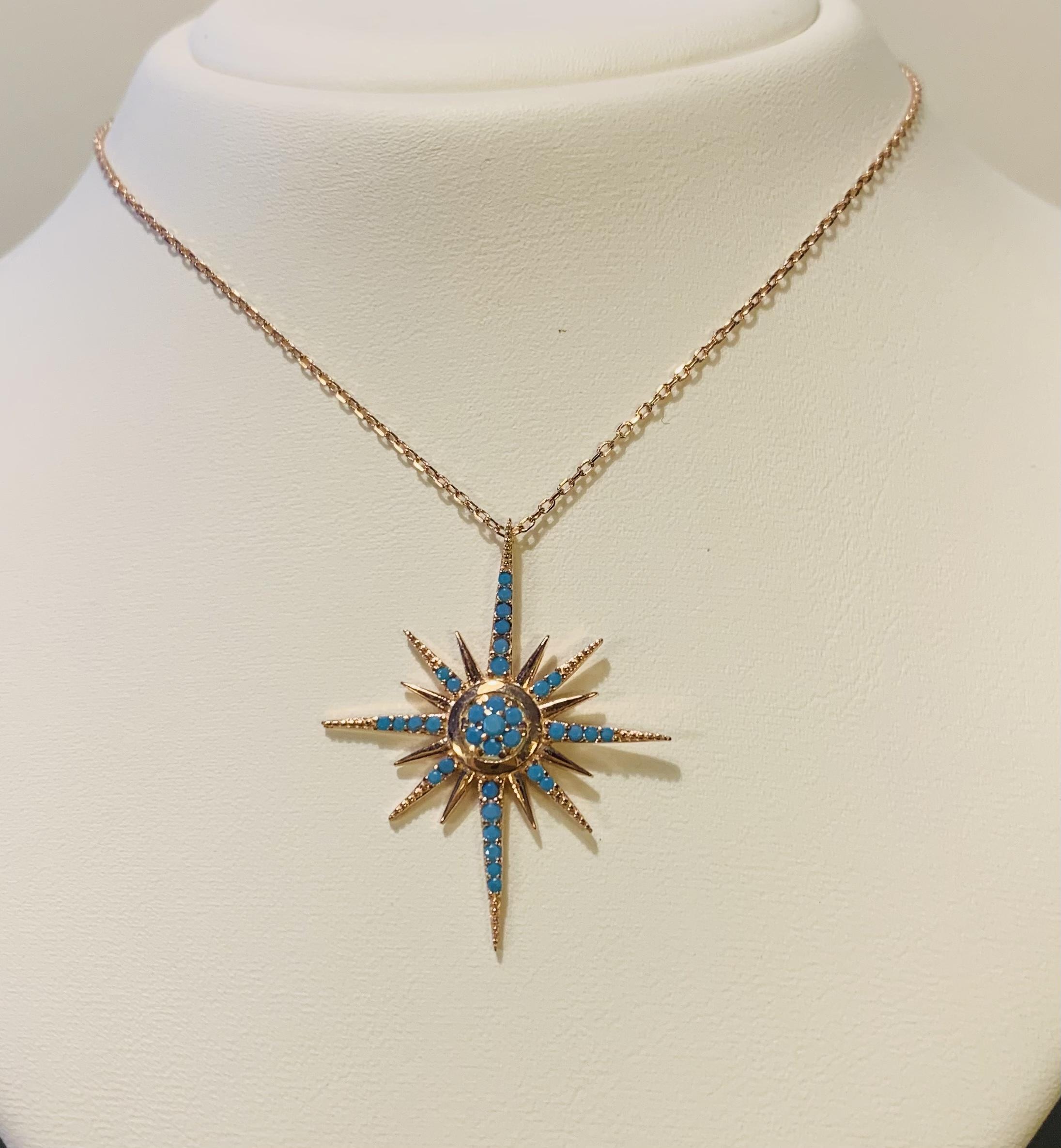 PT445. Polaarinen tähti kaulakoru, ruusupinnoitettu 925 sterlinghopea, ketjun pituus on 43 cm