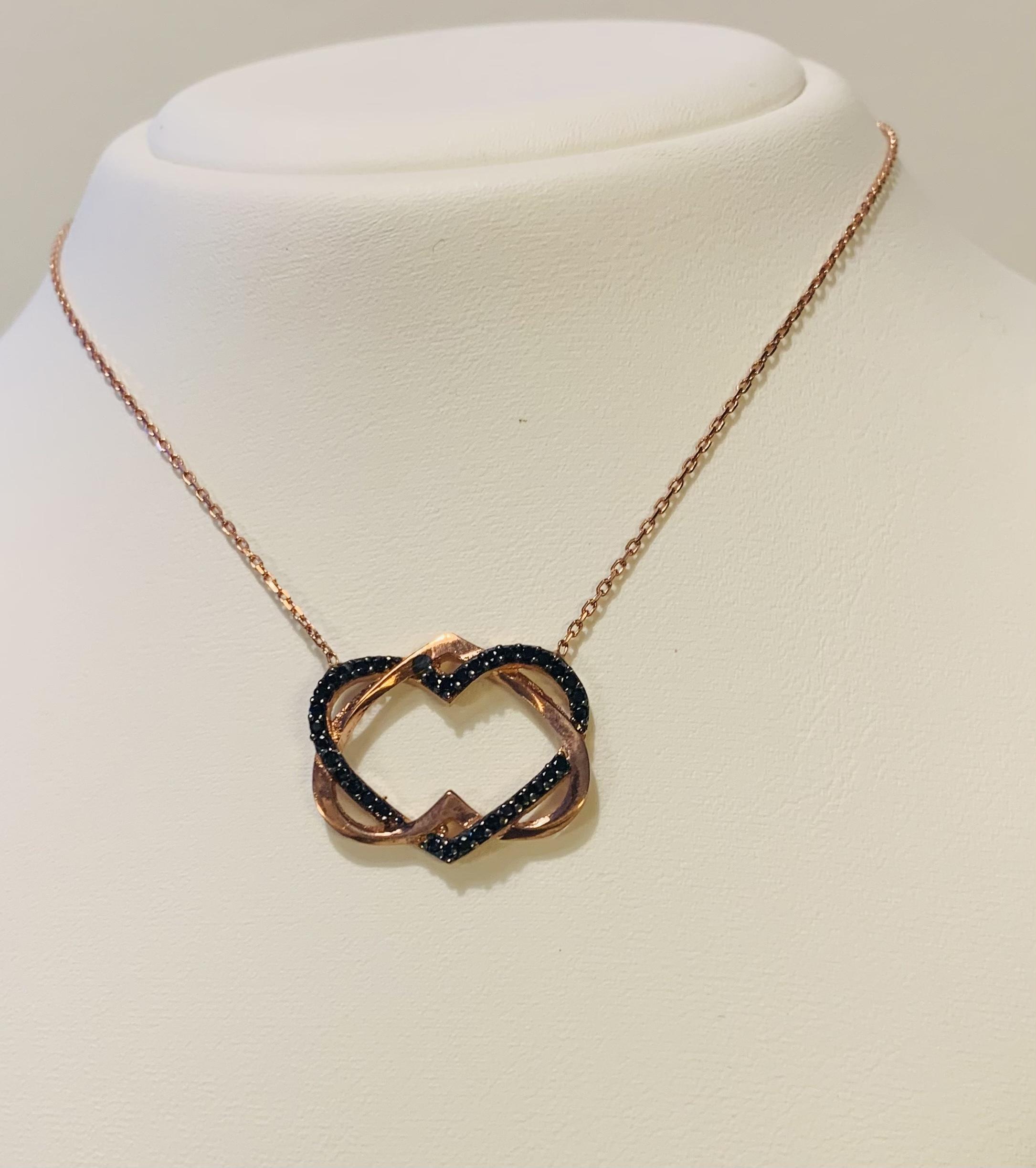 PT351. Sydän kaulakoru, ruusupinnoitettu 925 sterlinghopea, kivet ovat zirkonia ja ketjun pituus on 44 cm