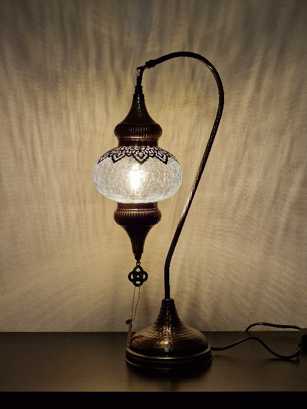 SSLN3 , Käsityönä valmistettu pöytälampu,metalli osat valmistettu messingistä,sisällä ei ole hehkulampu E14. korkeus : 53 cm lasin ympärys noin 48 cm paino: 1,250 gr