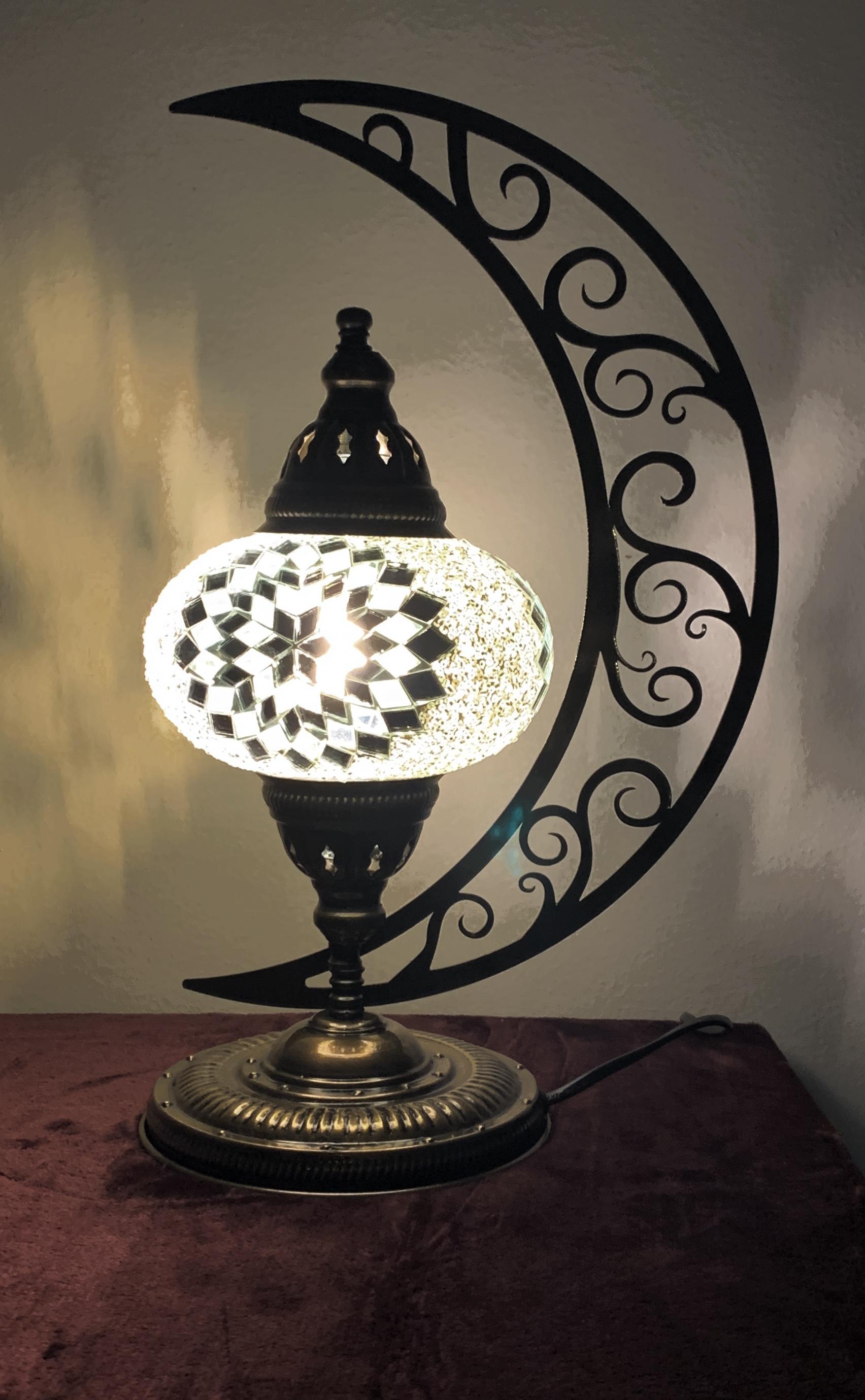 HL-3 Käsityönä valmistetti mosaiikki pöytälamppu,metalliosa valmistettu messingistä,ei sisällä hehkulamppua E14 Korkeus: 45 cm Leveys: 30 cm Paino: 1.350 gr