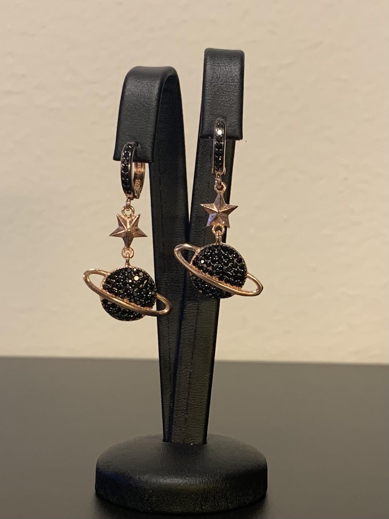 KP076, Ruusupinnoitettu 925 sterling hopea korvakoru ,mustat kivet ovat zirkonia