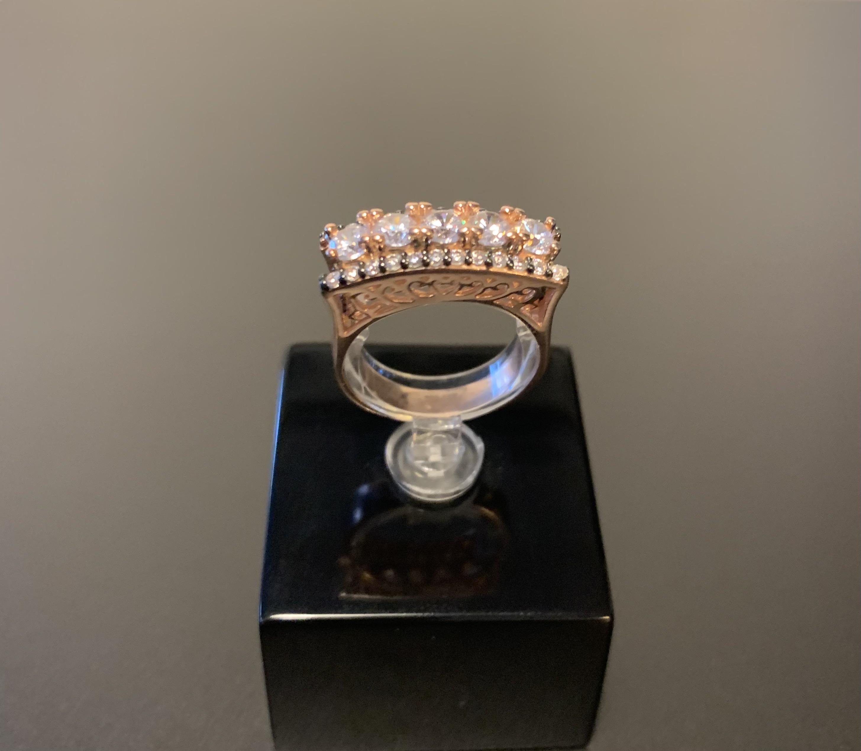 LR236 Ruusupinnoitettu 925 sterling hopea sormus, kivet ovat zirkonia. Koko: 15