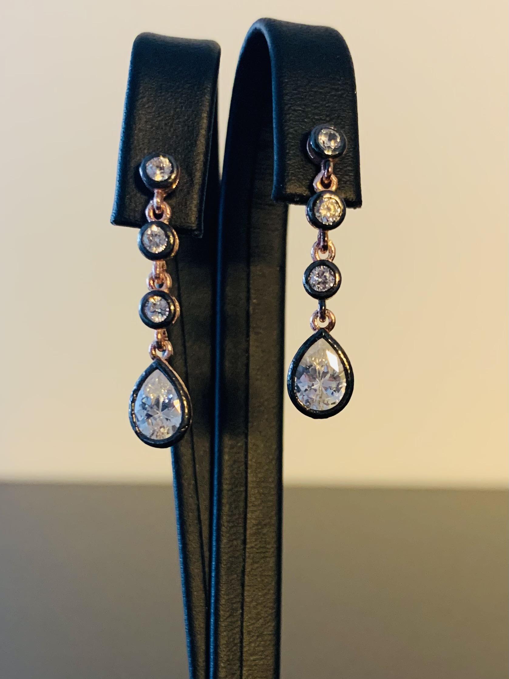 EA300, Ruusupinnoitettu 925 sterling hopea korvakoru, kivet ovat zirkonia