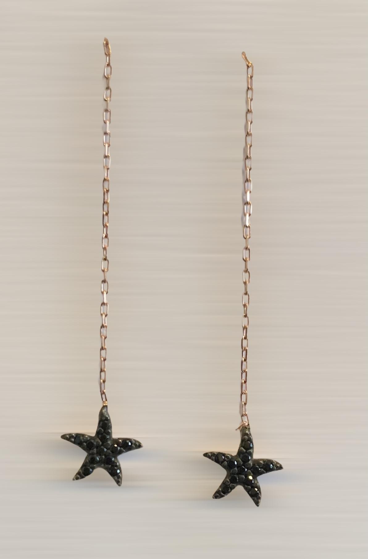 EA032, Ruusupinnoitettu 925 sterling hopea tähti korvakoru,mustat kivet ovat zirkonia