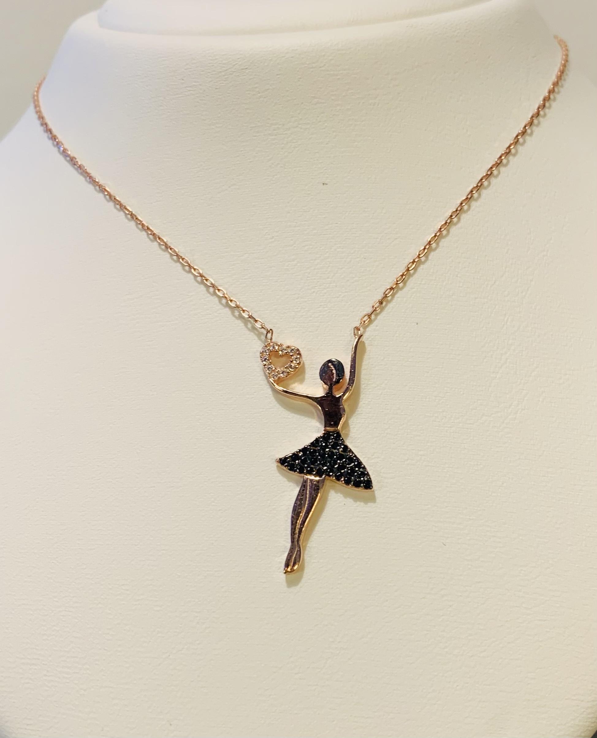PT672. Ruusupinnoitettu 925 Sterling hopea kaulakoru, kivet ovat zirkonia ja ketjun pituus on 44 cm