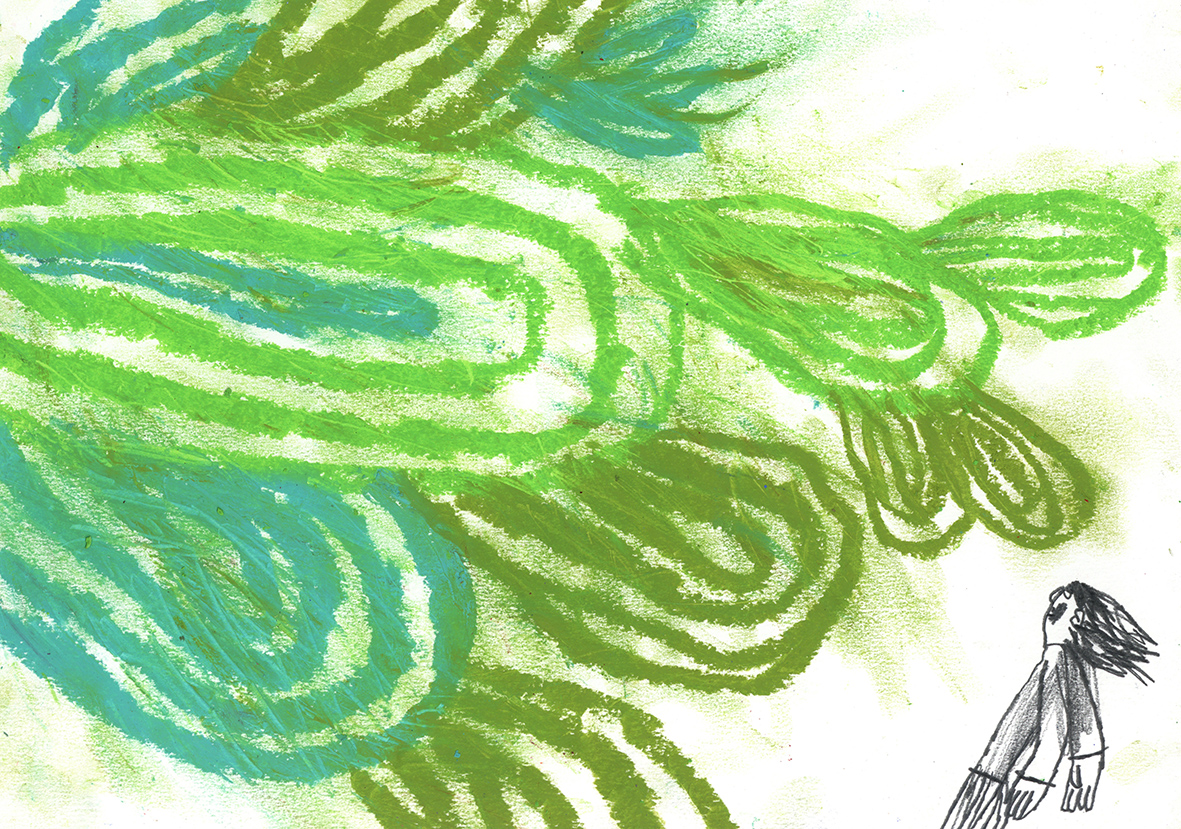 Oil pastel and pencil drawing on acid-free paper, 21cm x 29,7cm. Signed.