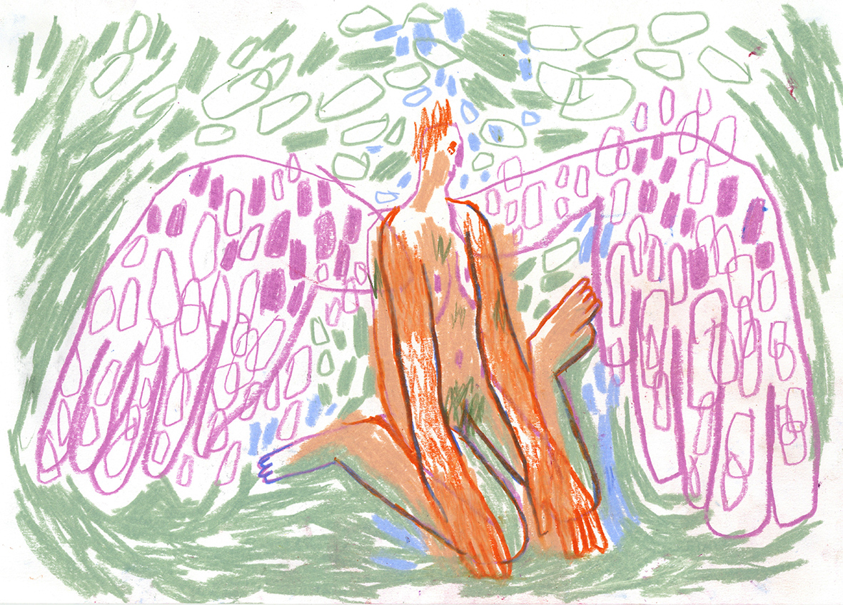 Color pencil and oil pastel drawing on acid-free paper, 21cm x 29,7cm. Signed.