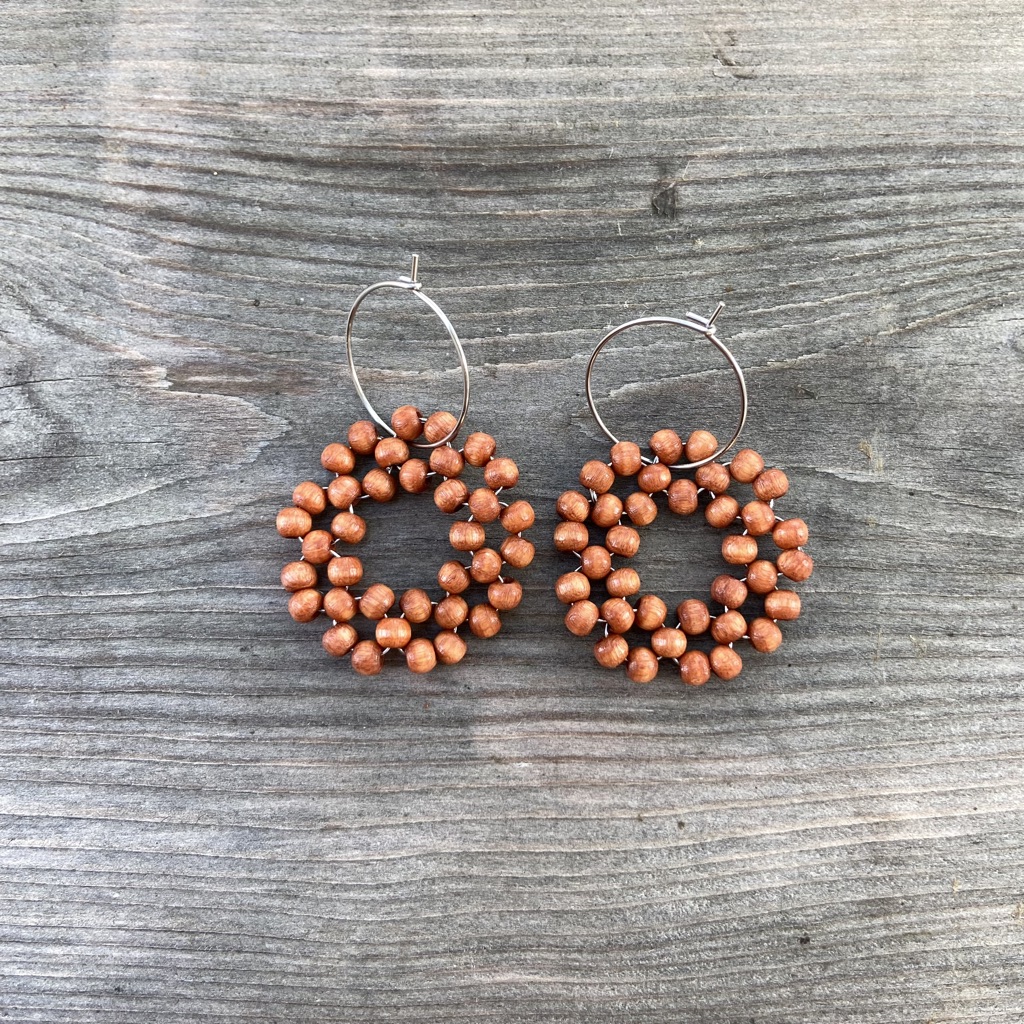 Puuhelmistä ja metallilangasta punottujen PikkuKehrä-korvakorujen muoto muistuttaa kukkaa tai aurinkoa. Puuhelmet ovat maalattuja ja lakattuja. Korvakorurengas on nikkelivapaata metallilankaa. Renkaiden halkaisija on n. 20 mm ja PikkuKehrän halkaisija on n. 30 mm. Korvakorupari on kiinnitetty uusiokartonkiseen tuotelappuun.