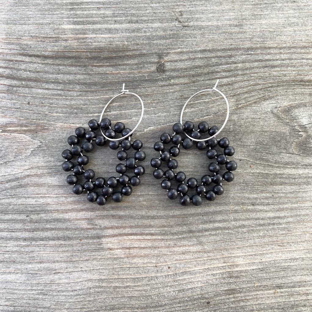 Puuhelmistä ja metallilangasta punottujen PikkuKehrä-korvakorujen muoto muistuttaa kukkaa tai aurinkoa. Puuhelmet ovat maalattuja ja lakattuja. Korvakorurengas on kirurgin terästä. Renkaiden halkaisija on n. 20 mm ja PikkuKehrän halkaisija on n. 30 mm. Korvakorupari on kiinnitetty uusiokartonkiseen tuotelappuun.