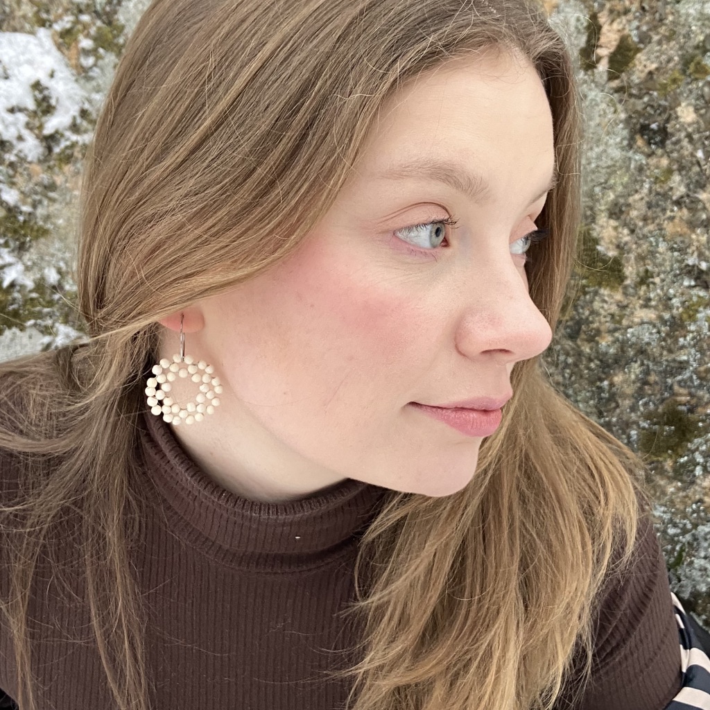Puuhelmistä ja metallilangasta punottujen PikkuKehrä-korvakorujen muoto muistuttaa kukkaa tai aurinkoa. Puuhelmet ovat maalattuja ja lakattuja. Korvakorurengas on nikkelivapaata metallilankaa. Renkaiden halkaisija on n. 20 mm ja PikkuKehrän halkaisija on n. 30 mm. Korvakorupari on kiinnitetty uusiokartonkiseen tuotelappuun.