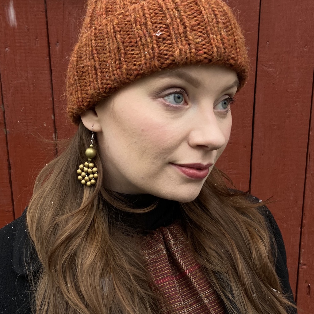 Puuhelmistä ja metallilangasta punottujen Flora-korvakorujen muoto muistuttaa kukkaa tai käpyä. Puuhelmet ovat maalattuja ja lakattuja. Korvakorujen metalliosat ovat kirurgin terästä ja koruteräslankaa. Korujen halkaisija on n. 25 mm ja Floran korkeus on n. 50 mm + koukku. Korvakorupari on kiinnitetty uusiokartonkiseen tuotelappuun.