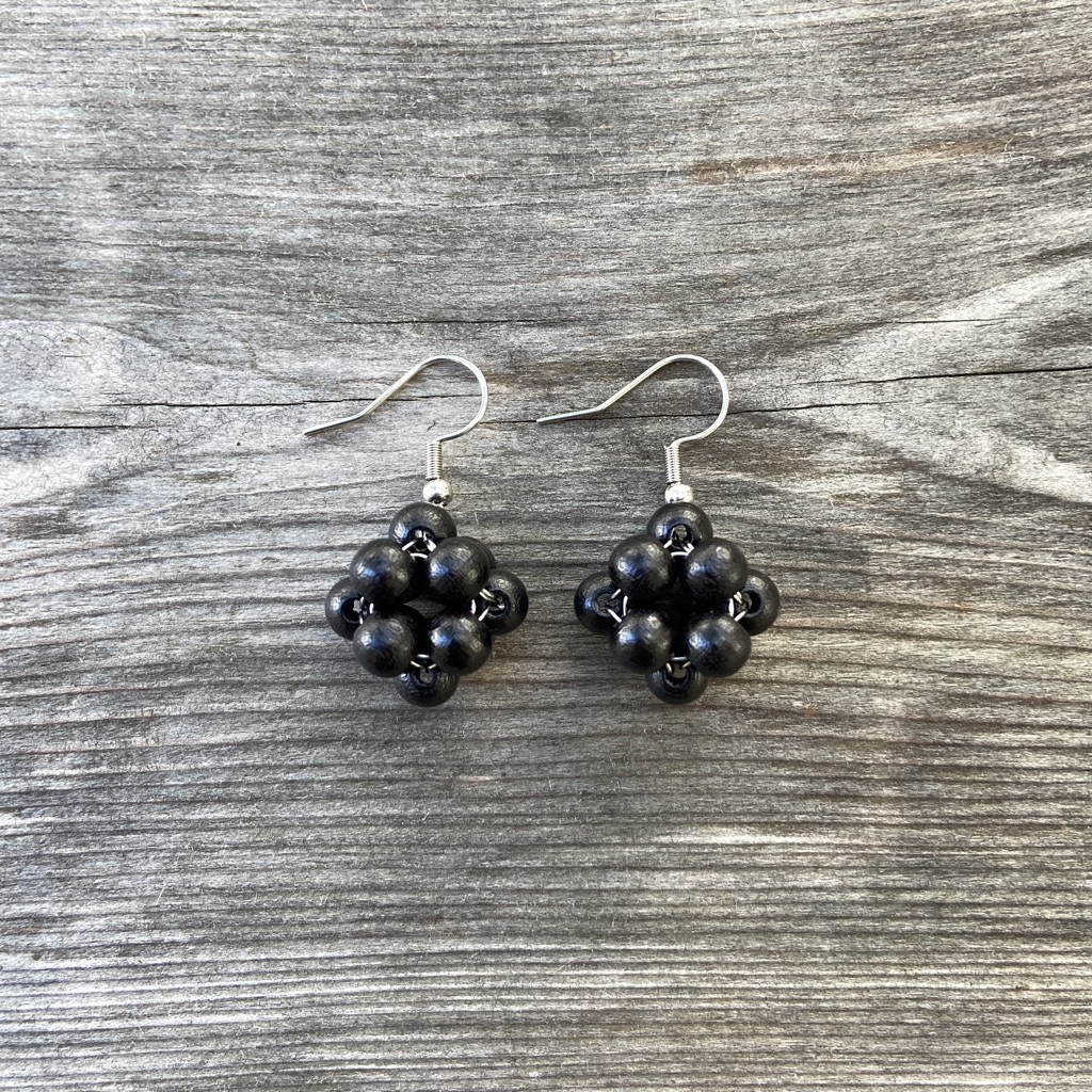 Puuhelmistä ja metallilangasta punottujen Terttu-korvakorujen muoto muistuttaa puutarhan vadelmia tai pientä kourallista viinimarjoja. Puuhelmet ovat maalattuja ja lakattuja. Koukuissa on käytetty nikkelivapaata metallilankaa. Korvakorujen halkaisija on n. 2 cm ja korkeus koukun kanssa n. 3,3 cm. Korvakorupari on kiinnitetty uusiokartonkiseen tuotelappuun.