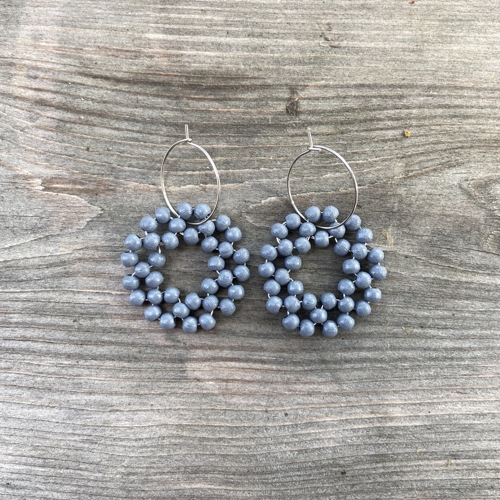 Puuhelmistä ja metallilangasta punottujen PikkuKehrä-korvakorujen muoto muistuttaa kukkaa tai aurinkoa. Puuhelmet ovat maalattuja ja lakattuja. Korvakorurengas on nikkelivapaata metallilankaa. Renkaiden halkaisija on n. 20 mm ja PikkuKehrän halkaisija on n. 30 mm. Korvakorupari on kiinnitetty uusiokartonkiseen tuotelappuun.