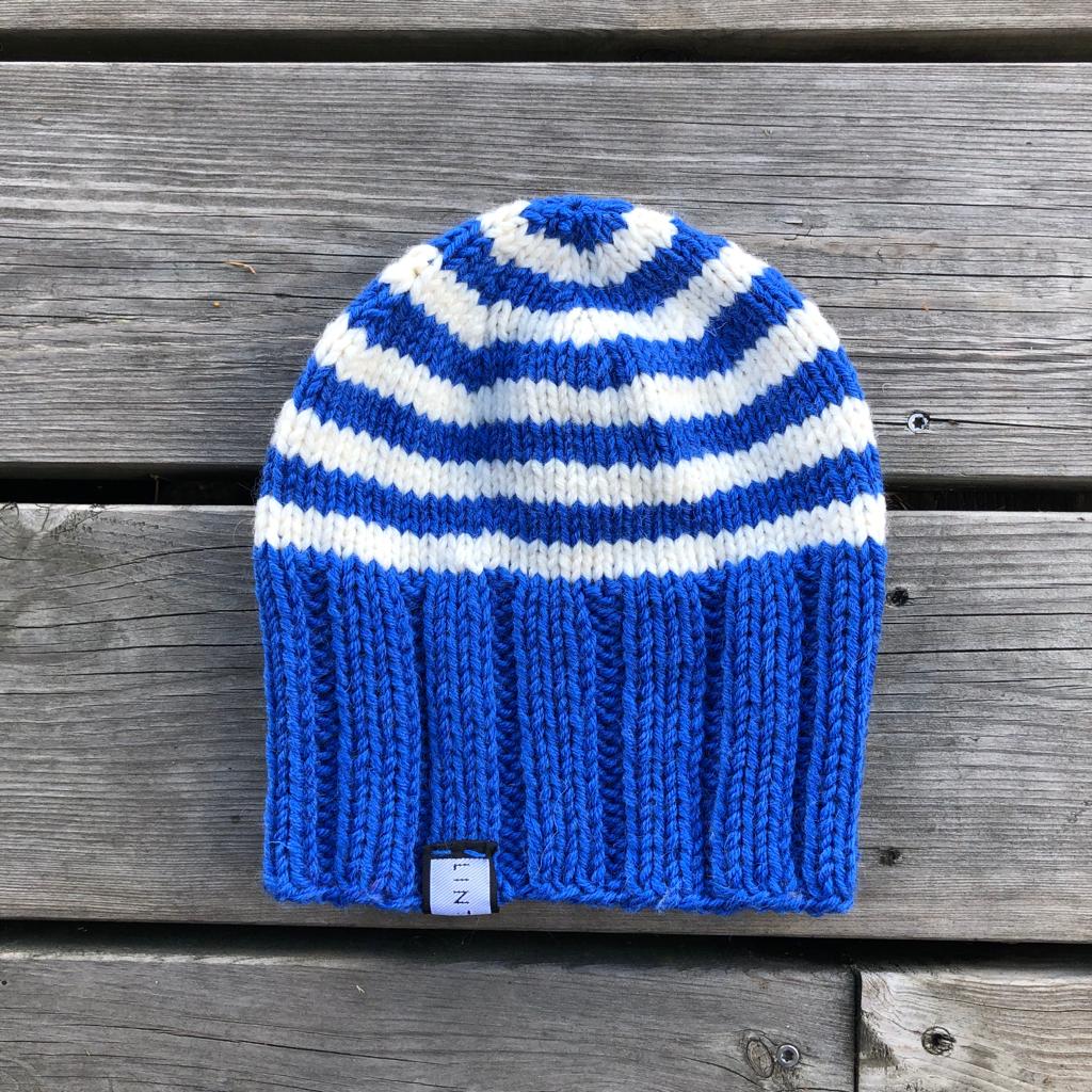 Käsin neulotun Meriraita-pipon resorin korkeus on n. 10 cm ja koko korkeus on n. 24 cm. Pipo on pääasiassa M-kokoa, mutta sitä voi tilata myös L- ja S-kokoisena. M-koko sopii n. 52-59 cm päänympärykseen. Meriraita-pipojen materiaali on 70 % villaa ja 30 % polyamidia ja sen voi pestä koneessa villapesuohjelmalla. Eri kokoja tai värejä voit kysyä tai tehdä tilauksen sähköpostilla minna@lintikki.fi.