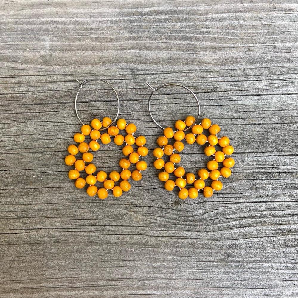 Puuhelmistä ja metallilangasta punottujen PikkuKehrä-korvakorujen muoto muistuttaa kukkaa tai aurinkoa. Puuhelmet ovat maalattuja ja lakattuja. Korvakorurengas on nikkelivapaata metallilankaa. Renkaiden halkaisija on n. 20 mm ja PikkuKehrän halkaisija on n. 30 mm. Korvakorupari on kiinnitetty uusiokartonkiseen tuotelappuun.