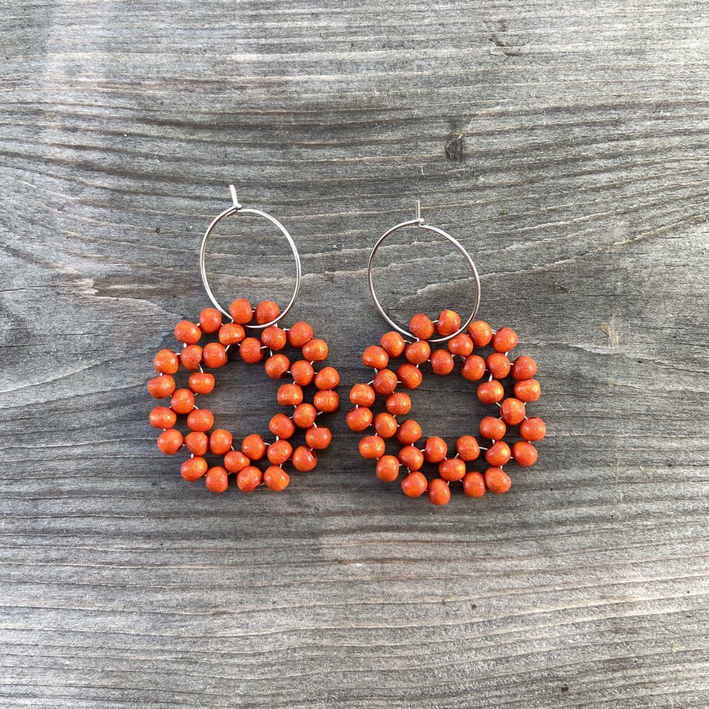 Puuhelmistä ja metallilangasta punottujen PikkuKehrä-korvakorujen muoto muistuttaa kukkaa tai aurinkoa. Puuhelmet ovat maalattuja ja lakattuja. Korvakorurengas on nikkelivapaata metallilankaa. Renkaiden halkaisija on n. 20 mm ja PikkuKehrän halkaisija on n. 30 mm. Korvakorupari on kiinnitetty uusiokartonkiseen tuotelappuun.