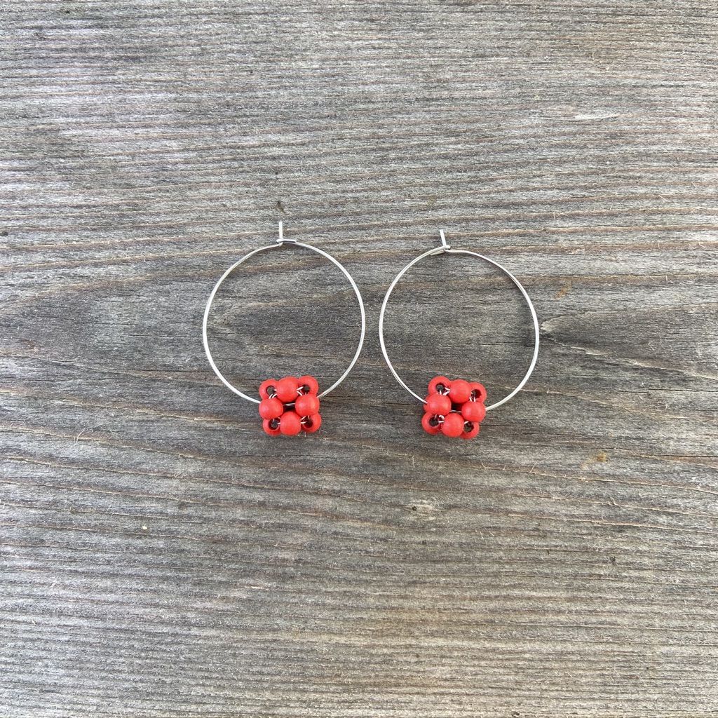 Puuhelmistä ja metallilangasta punottujen MiniTerttu-korvakorujen muoto muistuttaa villivadelmaa. Puuhelmet ovat maalattuja ja lakattuja. Korvakorurengas on nikkelivapaata metallilankaa. Renkaiden halkaisija on n. 30 mm ja MiniTertun halkaisija on n. 10 mm. Korvakorupari on kiinnitetty uusiokartonkiseen tuotelappuun.