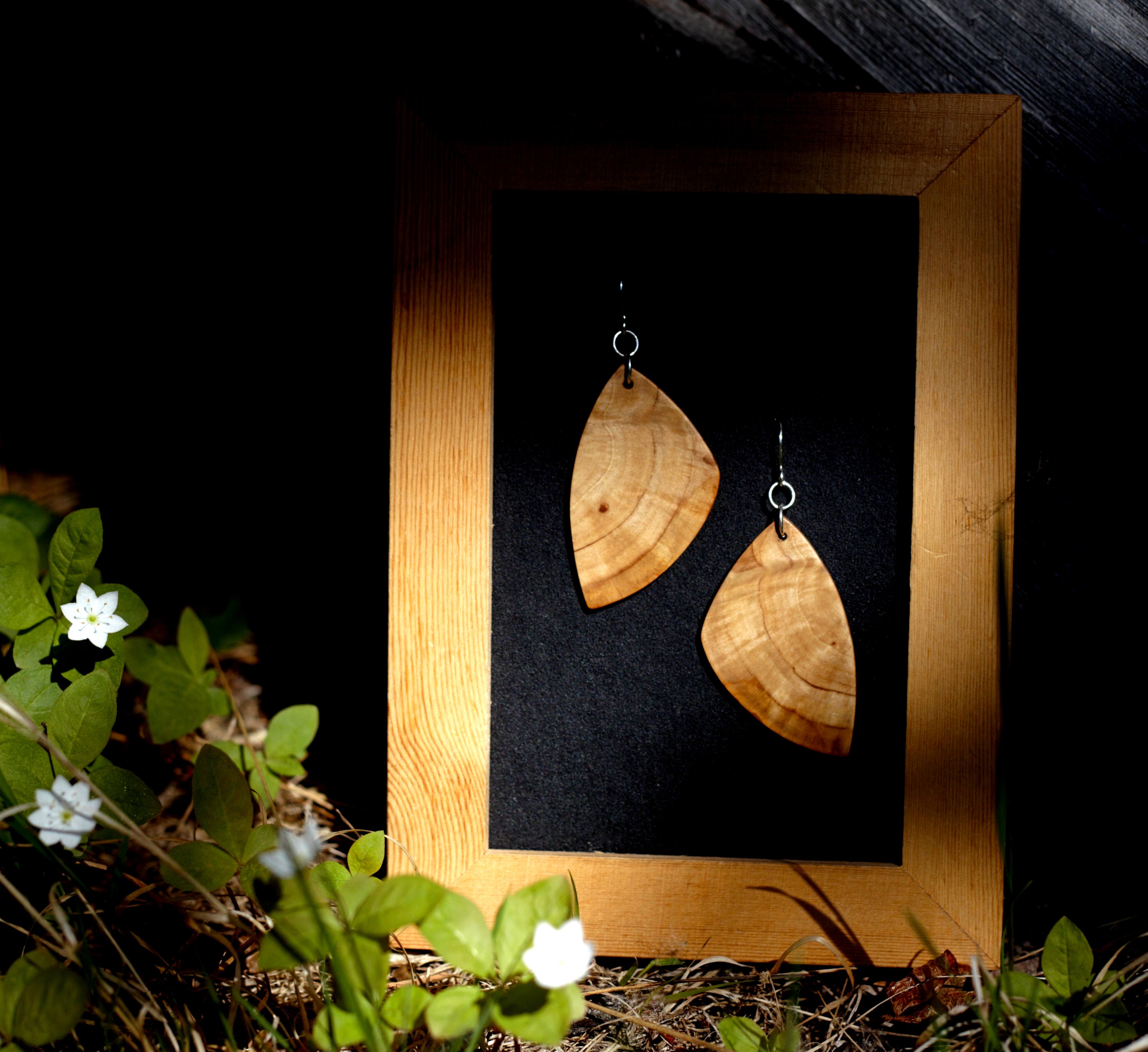 Korvakorut, koivunpahka, koukut sterling-hopeaa