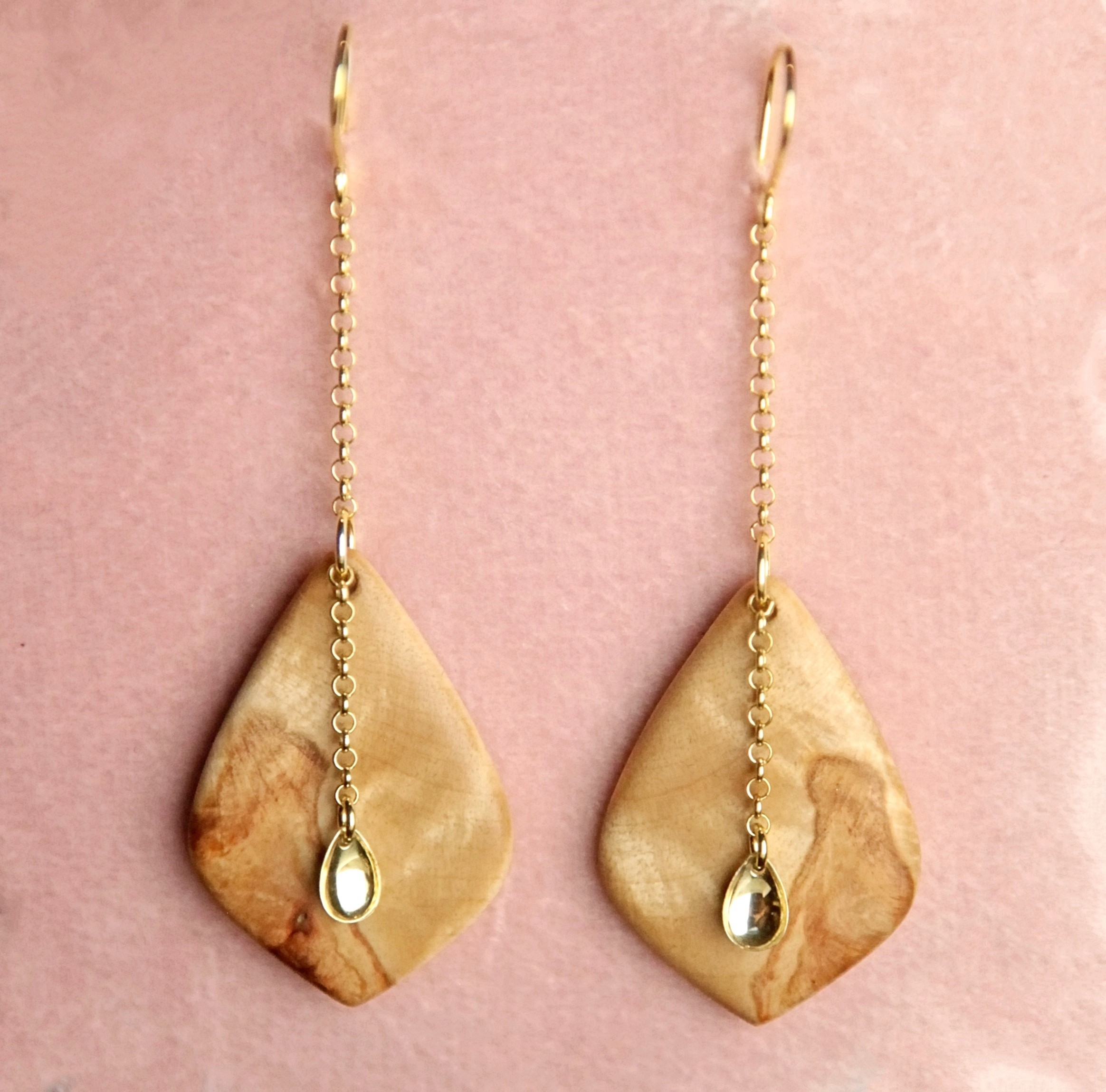Korvakorut, koivunpahka ja kullattu hopea, koukut kullattua sterling-hopeaa