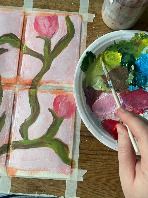 Postikortin kokoinen alkuperäinen taidemaalaus paperilla
