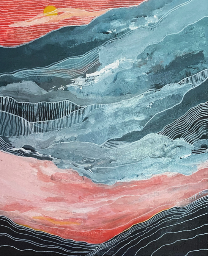 73 x 60 cm. Ripustusvalmis taidemaalaus kankaalla. Valkoiseksi maalatut reunat kehystää teosta kauniisti. Hintaan sisältyy toimitus.