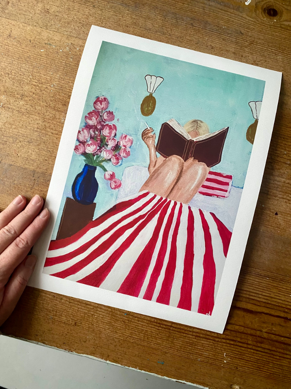 ' Piilossa ' on maalaus niille hetkille ja päiville kun haluat vaan piiloutua kaikelta. Joskus siksi, että se on helpompaa kuin maailman kohtaaminen ja joskus siksi, että yksinolo palauttaa takaisin omiin asetuksiin. Alkuperäisestä maalauksesta teetetty taideprintti. Kuva on tulostettu laadukkaalle 100% puuvillasta valmistetulle Fine Art paperille joka kestää aikaa. Kuvan koko on A4 (21 x 29,7 cm) ja reunoilla valkoista 2cm jolloin sen saa kauniisti kehyksiin kehyspahvin (paspatuurin) kanssa.