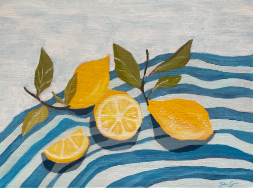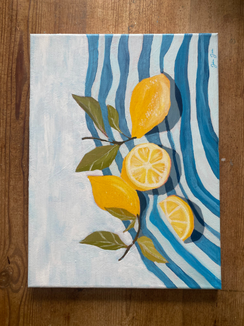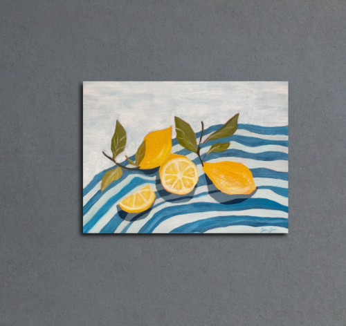 Raikas sitruunamaalaus ihastuttamaan vaikka keittiön seinälle. HUOM! Alennettu hinta alareunassa olevan pienen kolhun vuoksi. (näkyvillä lähikuvassa)