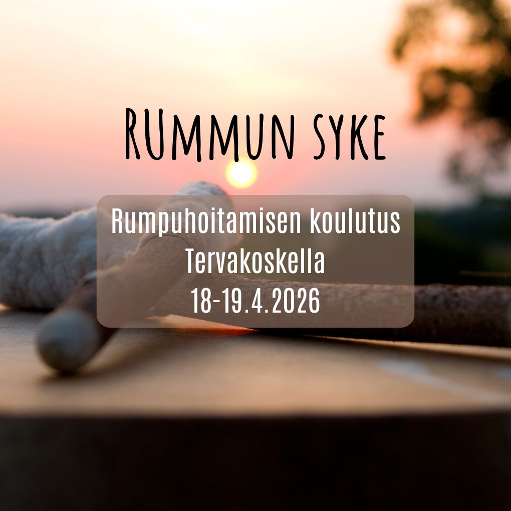Rummun Syke – Rumpuhoitamisen koulutus on kaksipäiväinen intensiivikoulutus, jossa perehdyt shamanistisen rummun ja kannuksen käyttöön parantavana välineenä. Koulutuksessa yhdistyvät kalevalainen perinne, luontoviisaus ja yli kymmenen vuoden käytännön kokemus rumpuhoitamisesta. Aikaisempaa kokemusta rummun käytöstä ei vaadita – koulutus sopii kaikille aiheesta kiinnostuneille.