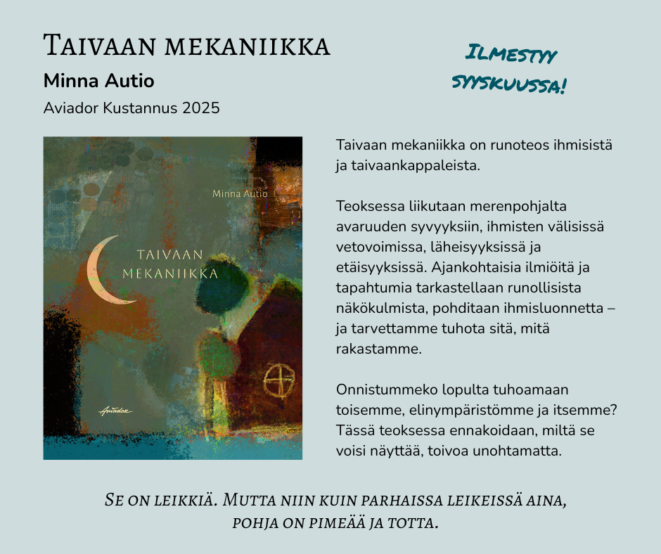 Tilaa runoteos Taivaan mekaniikka postipakettina – saat mukaan myös omistuskirjoituksen.