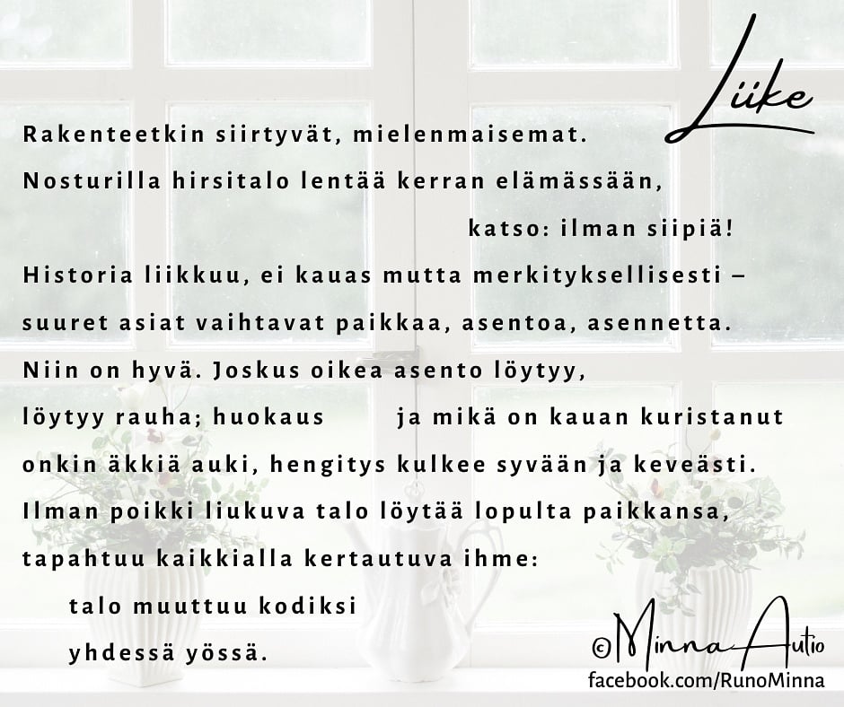 Haluaisitko antaa itsellesi tai läheisellesi lahjaksi henkilökohtaisen, yksilöllisen runon? Runon, joka kannustaa eteenpäin, lohduttaa surussa, kertoo sinusta tai sanoittaa viestisi muille? Tilaa se tästä!