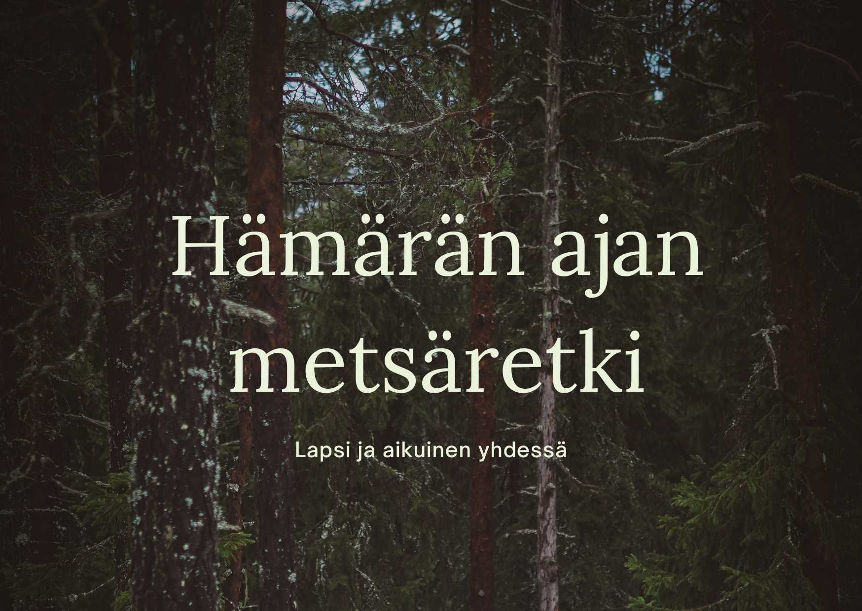 Lähde yhdessä läheisen lapsen kanssa ihmettelemään hiljentynyttä metsää. Saatte tutustua ympäröivään luontoon turvallisesti ja kokea ripauksen luonnon omaa taikaa.
