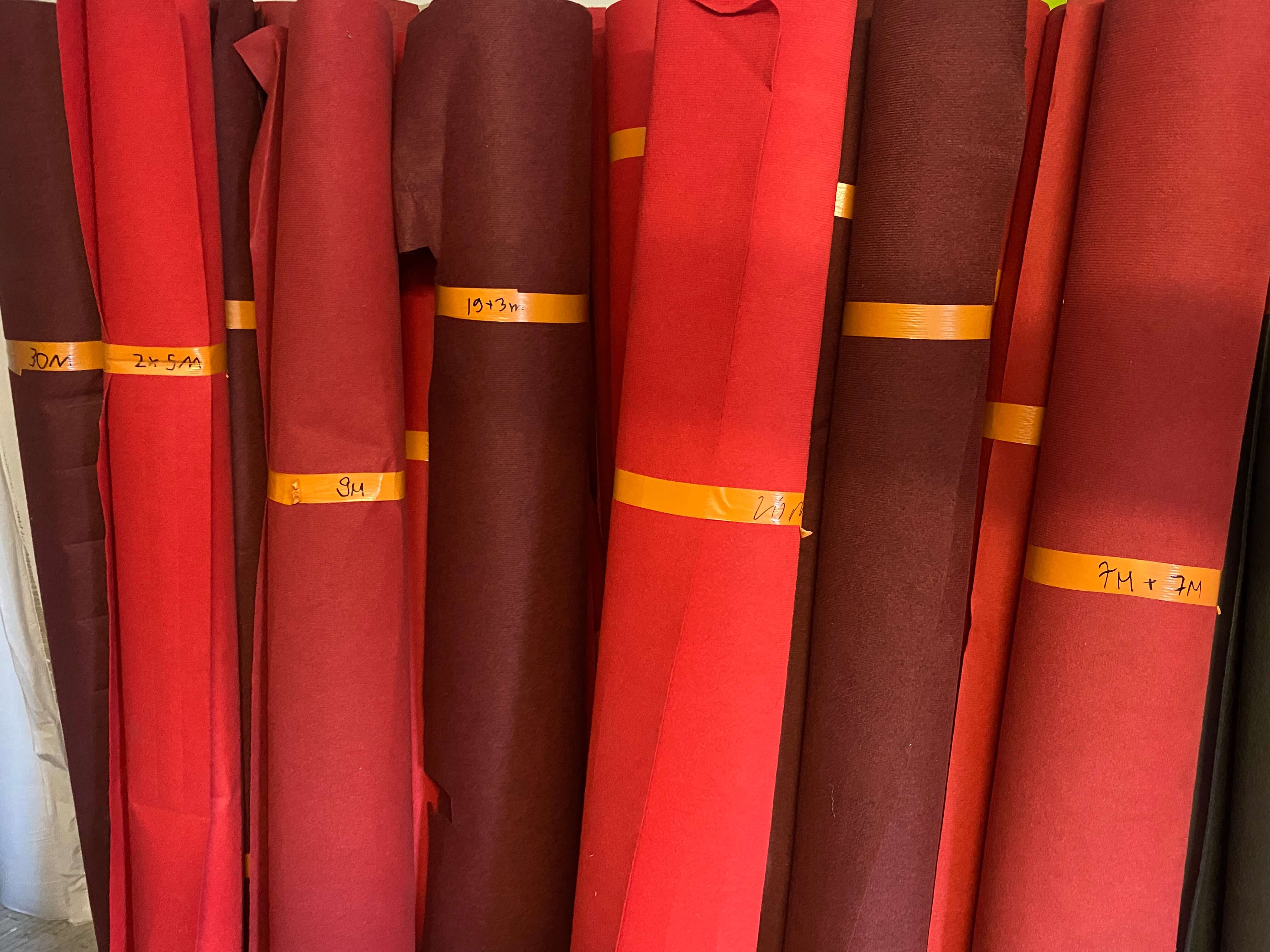 Käytetyt punaiset messumatot ovat olleet vain yhdessä sisätapahtumassa. Messumatto on yleisilmeeltään siistiä, mutta siinä saattaa olla tapahtuman purun aikaisia jälkiä mm. trukin renkaista ja pumppukärryistä.