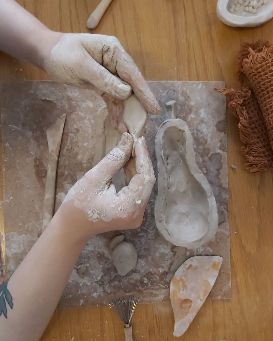 Mirva Keski-Vähälä on muotoilija, ratkaisukeskeisen taideterapian ohjaaja ja Colour Boxin perustaja. Reija Stenius on visuaalisen alan ammattilainen ja kasvanut savipajalla. Yhdessä heitä inspiroi saven kehollisuus ja merkityksellinen savimuotoilu, jossa savi saa syvemmän tarkoituksen.
