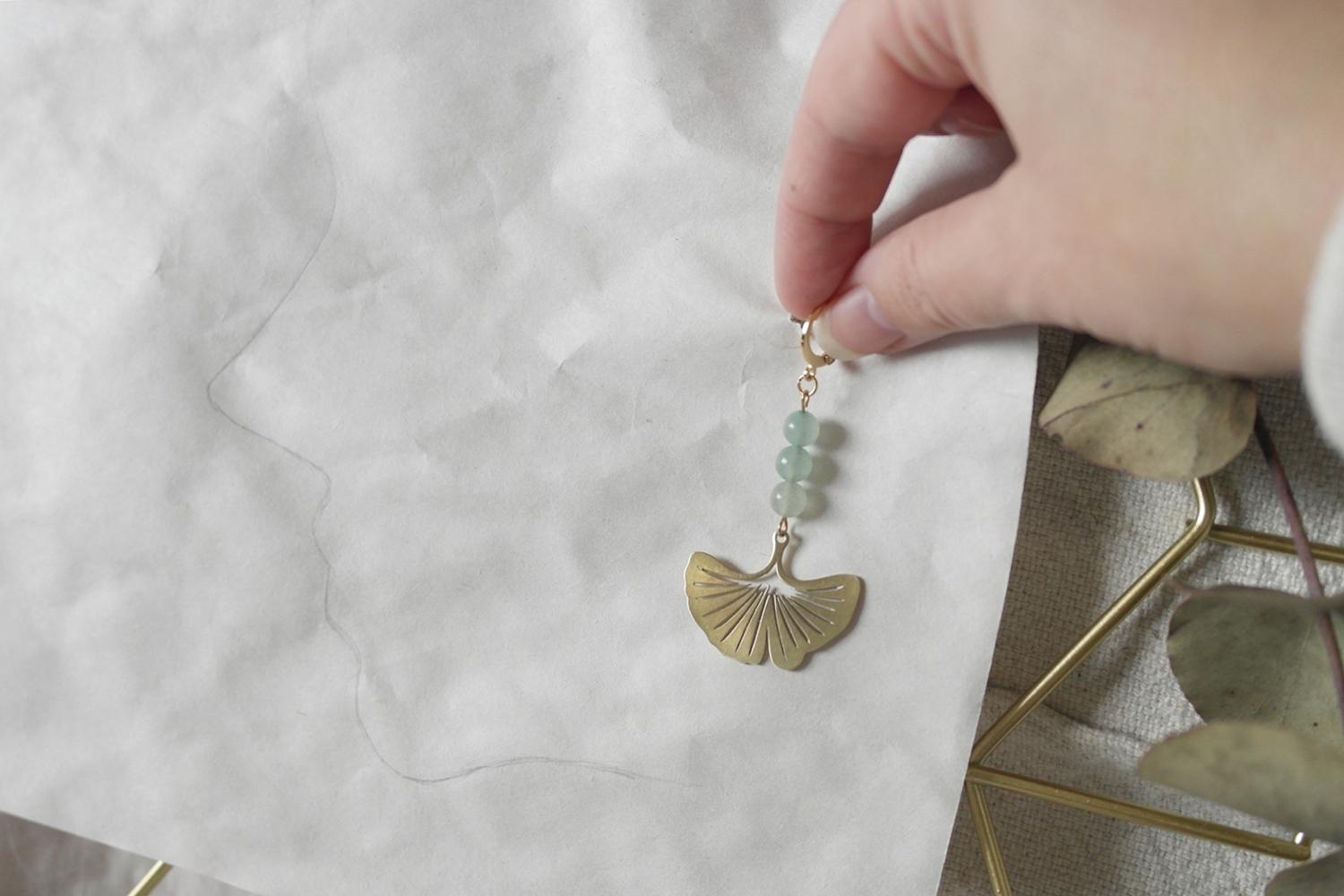 riipuksina korvakoruissa laserleikatut messinkiset gingko-lehdet ja kiinnitysosana pienet kullatut kirurginteräksiset renkaat. korvakorut ovat tilattavissa myös muilla kiinnitystavoilla ja/tai helmillä, joko instagramin kautta tai sähköpostilla. kuvanmukaisena korujen pituus noin 6cm.