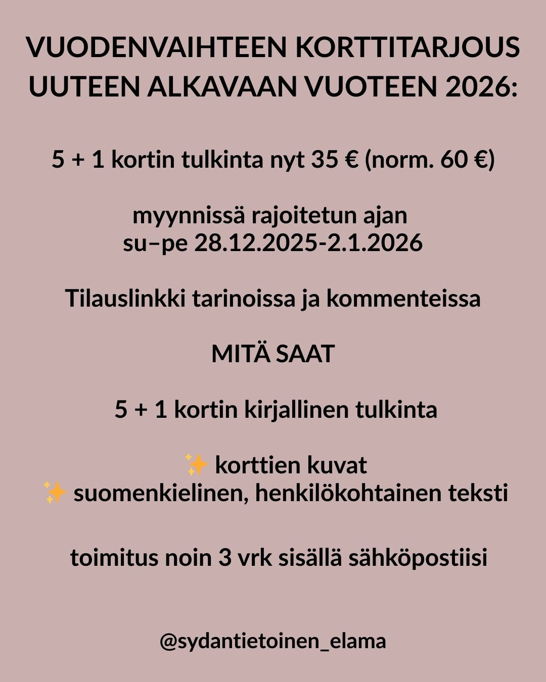 💗 Vuodenvaihteen korttitarjous: 5 + 1 kortin tulkinta nyt 35 € (norm. 60 €)